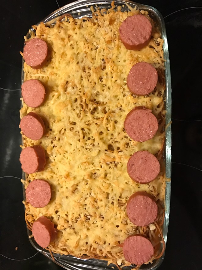 Spaghetti zuurkoolschotel, ik hoor je denken, spaghetti en zuurkool in 1 gerecht? Is dat wel lekker? Toen een van mijn leerlingen een paar jaar geleden zei dat ze dat aan het eten was keek ik haar met een vies gezicht aan. “Het is echt heel lekker hoor juf”.