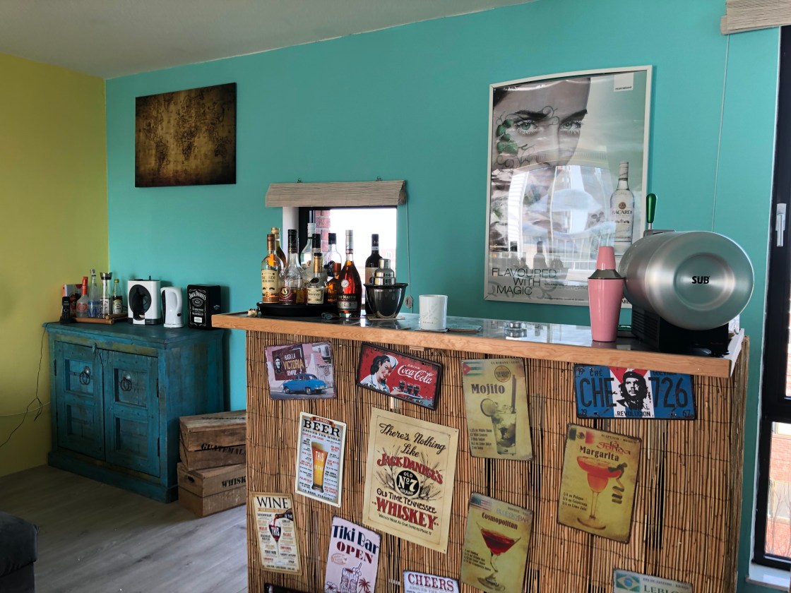 Wij hebben op onze bovenverdieping een soort loungeruimte gemaakt. We hebben er een bar gebouwd met een heuse tap en de inrichting willen we steeds meer een beetje Cubaans maken. Door middel van een bepaald interieur. Dit lukt aardig, alleen zijn die meubels niet heel goedkoop dus doen we het stukje bij beetje.