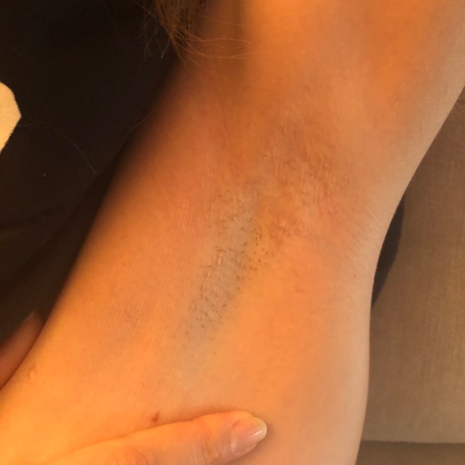 Nadat het was afgetekend werd mijn oksel netjes geschoren en ging de laser erop. Hieronder een filmpje van hoe dit er aan toegaat en eruit ziet.