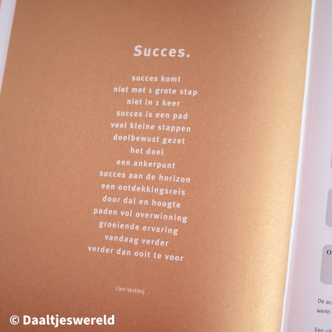 Hier vind je elke week weer en leuke nieuwe quote en onderaan zoals bij de maanplanner een to-do lijst en creatieve ruimte. Dit is echt het agenda gedeelte waar je je dagelijkse planning en afspraken in zet. Ik vind dit zo fijn, Ik plan hier mijn blogs en fotografie in maar ook de afspraken met vrienden en familie, wat ik ga eten en zo door! Elke dag heeft voor mij voldoende ruimte en zo is aller lekker overzichtelijk. Ook leuk, onder aan elke dag kun je een overwinning en een groeipunt neerzetten.
