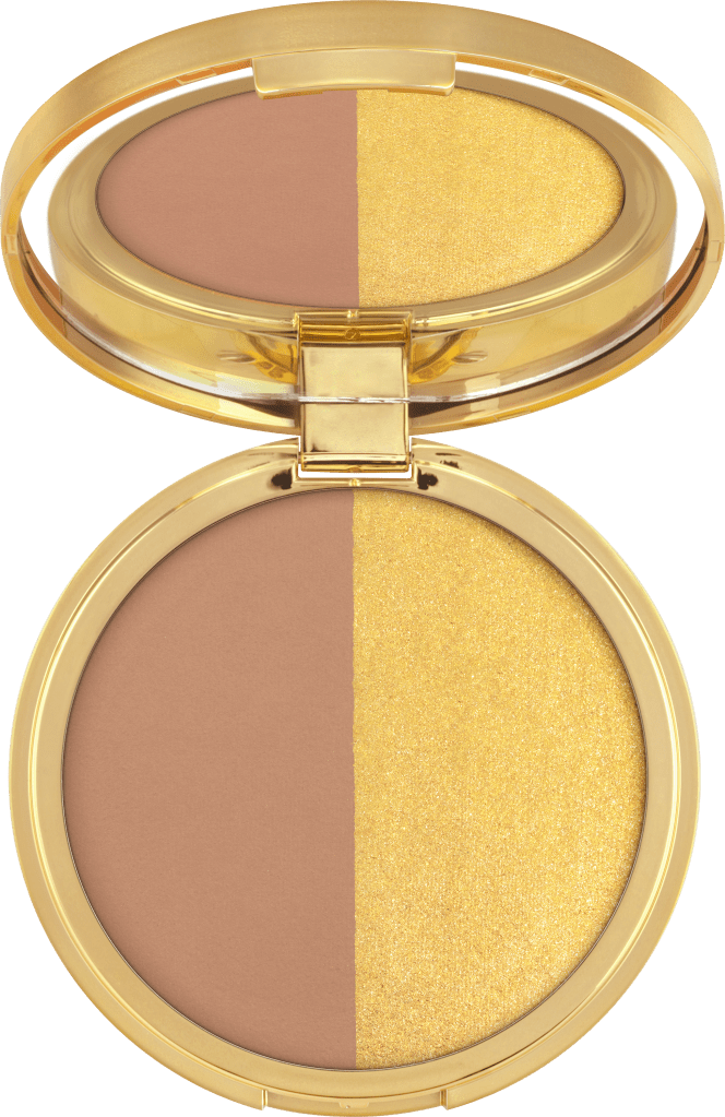 gouden verpakking combineert aan de ene kant een matte bronzer met aan de